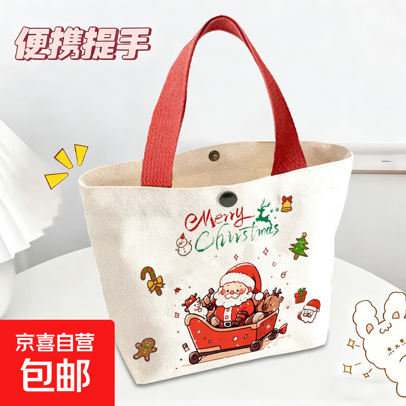 圣诞节帆布袋礼品袋平安夜苹果糖果手拎礼物袋圣诞伴手礼手提袋 圣诞包【款式1】1个装