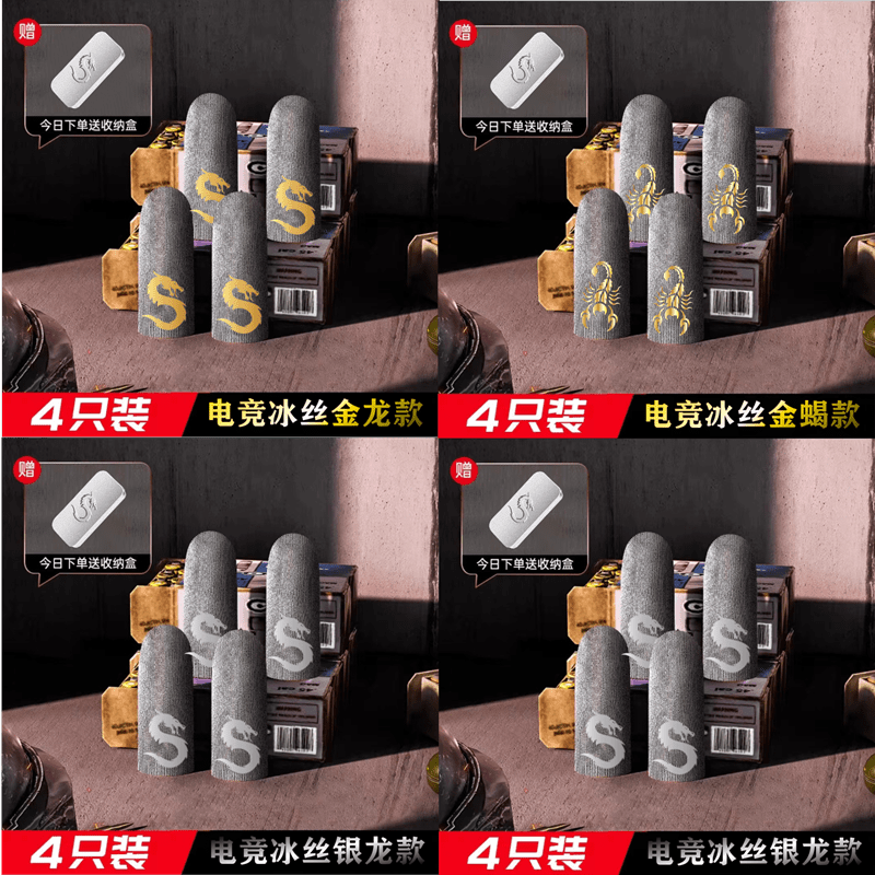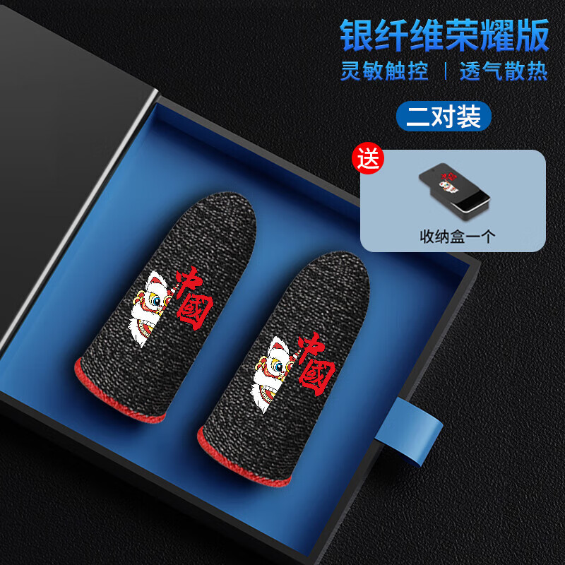 游戏指套电竞吃鸡手指套防汗冰丝薄防滑拇指套王者打手游 国潮定制款【冰丝导纤维】4只装 【配收纳盒】