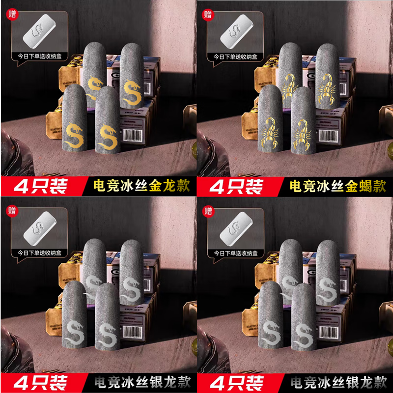 游戏指套电竞吃鸡手指套防汗冰丝超薄防滑拇指套王者打手游 国潮定制款【冰丝导纤维】4只装 【送收纳盒】