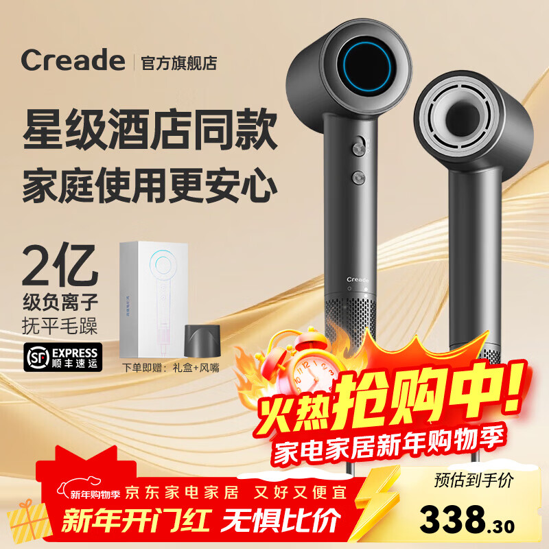 Creade科瑞德高速吹风机家用吹头发大功率速干负离子护发电吹风筒新年生日女生礼物礼盒K-4032 K-4032铂金灰【礼盒装】