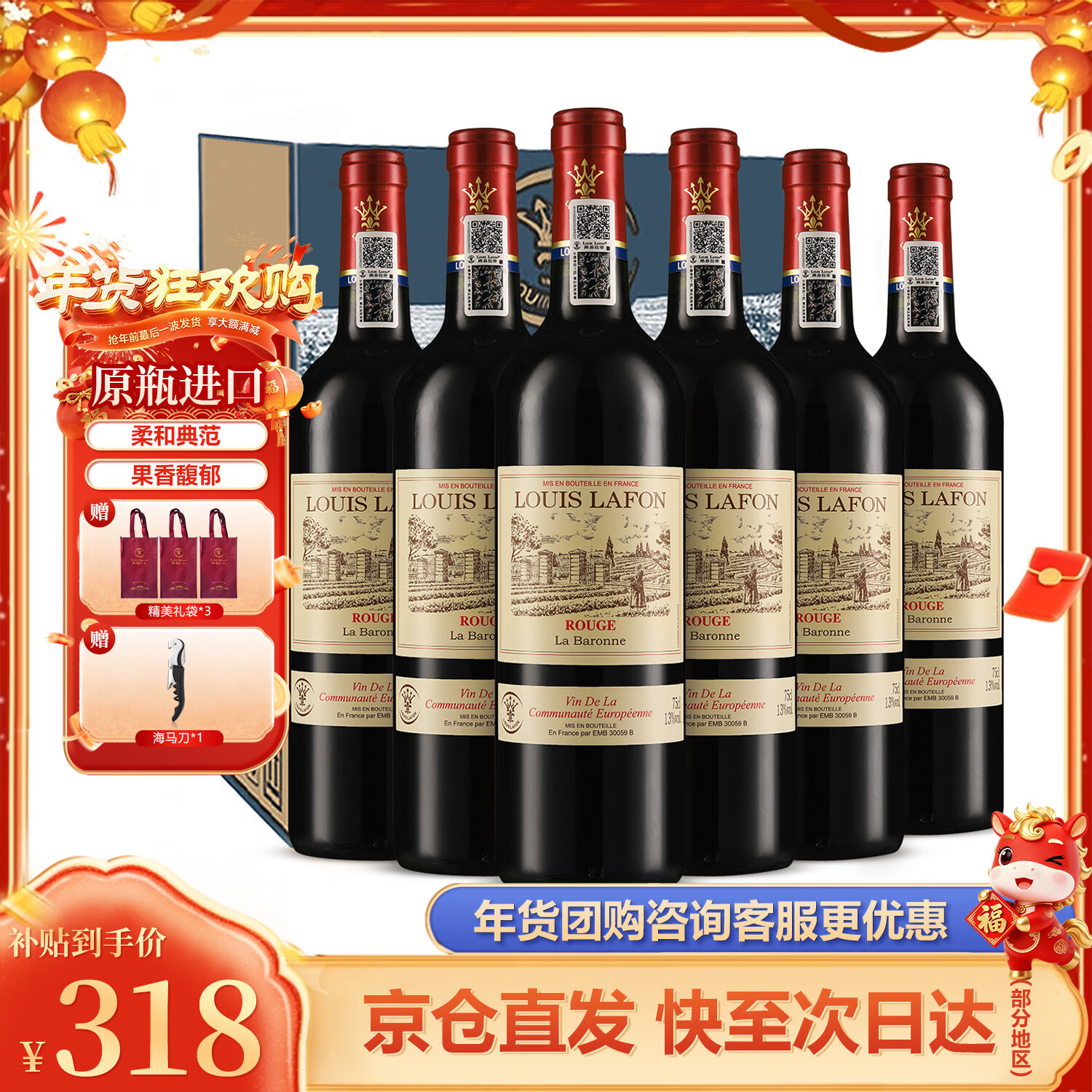 路易拉菲(LOUIS LAFON)法国进口红酒整箱 R180歌海娜干红葡萄酒原酒进口 送礼品