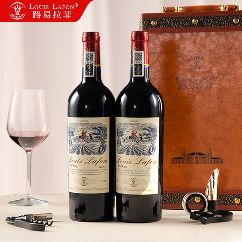 路易拉菲(LOUIS LAFON)法国原瓶进口红酒礼盒歌海娜丹魄14度干红葡萄酒750ml*2年货送礼