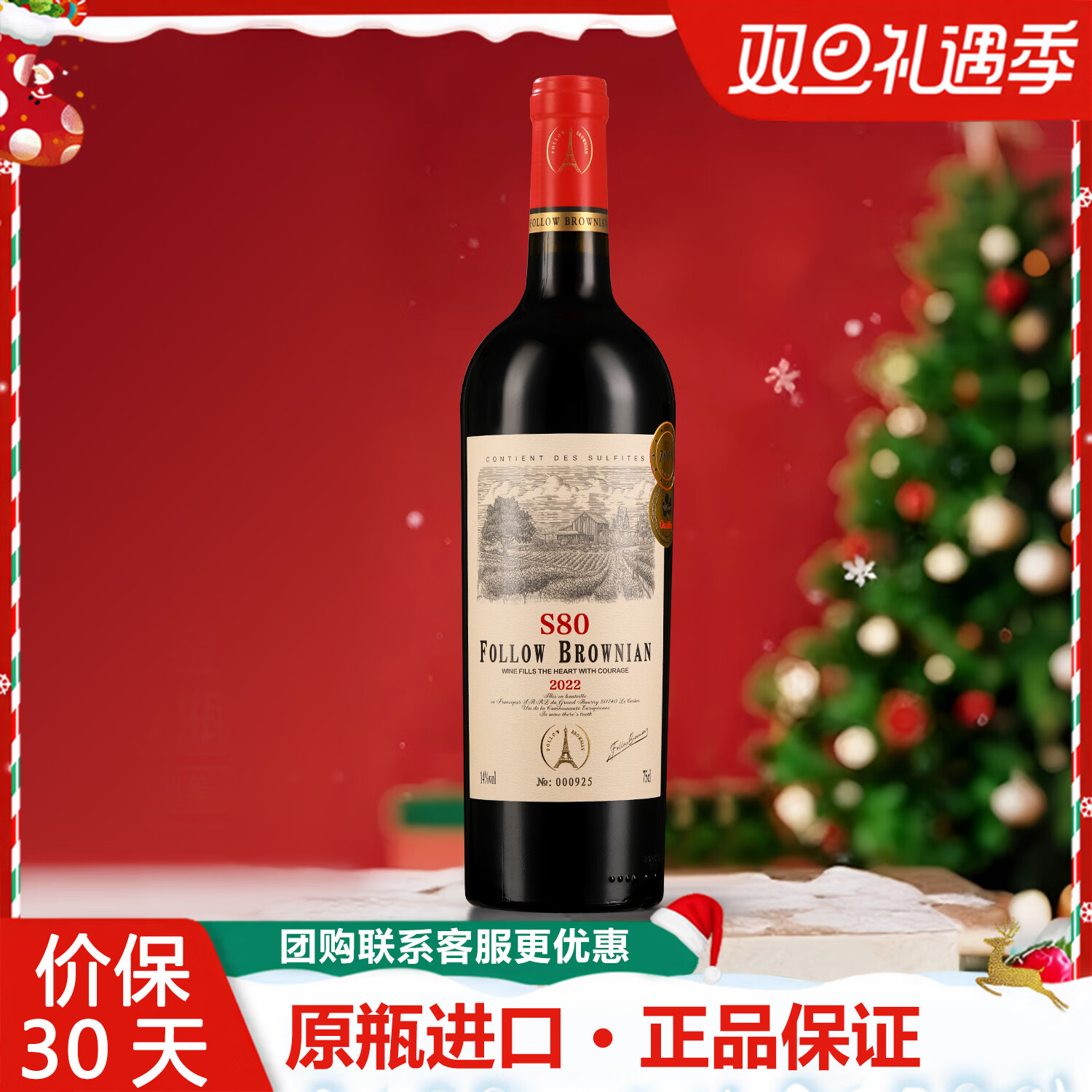 法布朗法国原瓶进口红酒14度S80赤霞珠歌海娜西拉干红葡萄酒750ml单瓶装