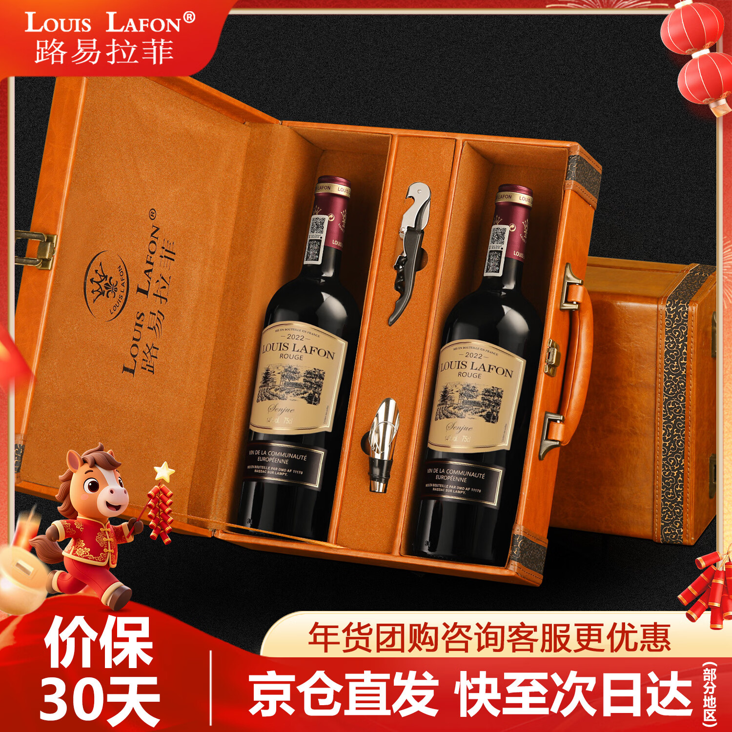 路易拉菲(LOUIS LAFON)法国原瓶进口红酒AOC歌海娜西拉S97干红葡萄酒 750ml*2年货送礼盒