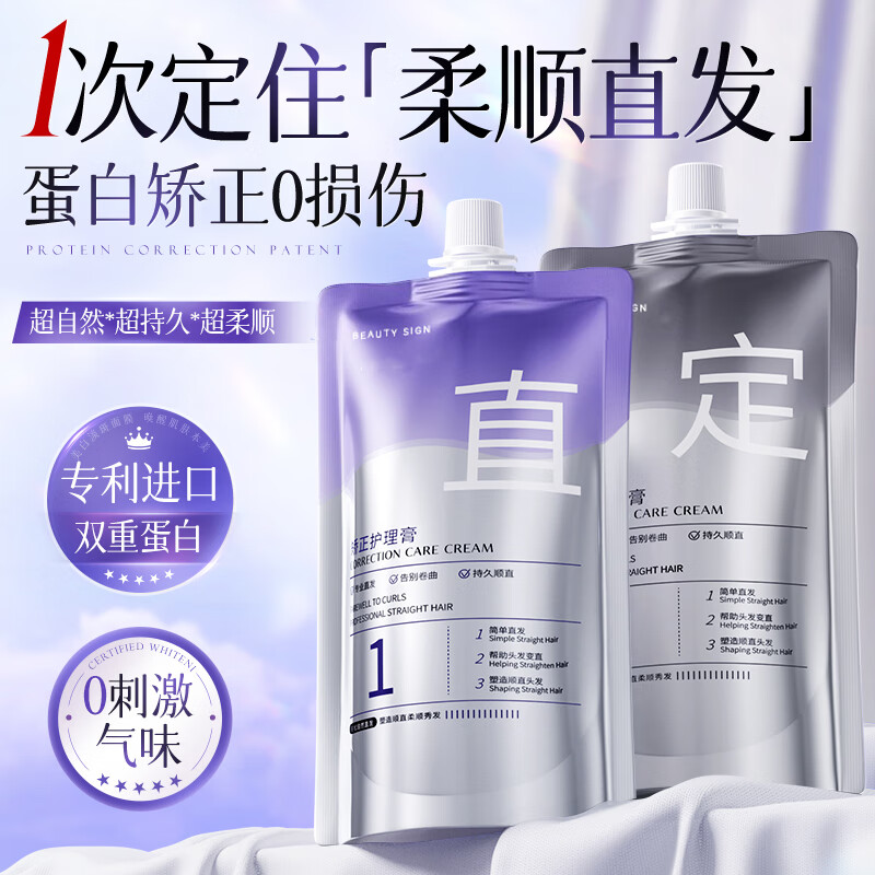 美人符直发膏蛋白矫正免拉免夹家用头发软化剂烫发药水拉直柔顺定型男女