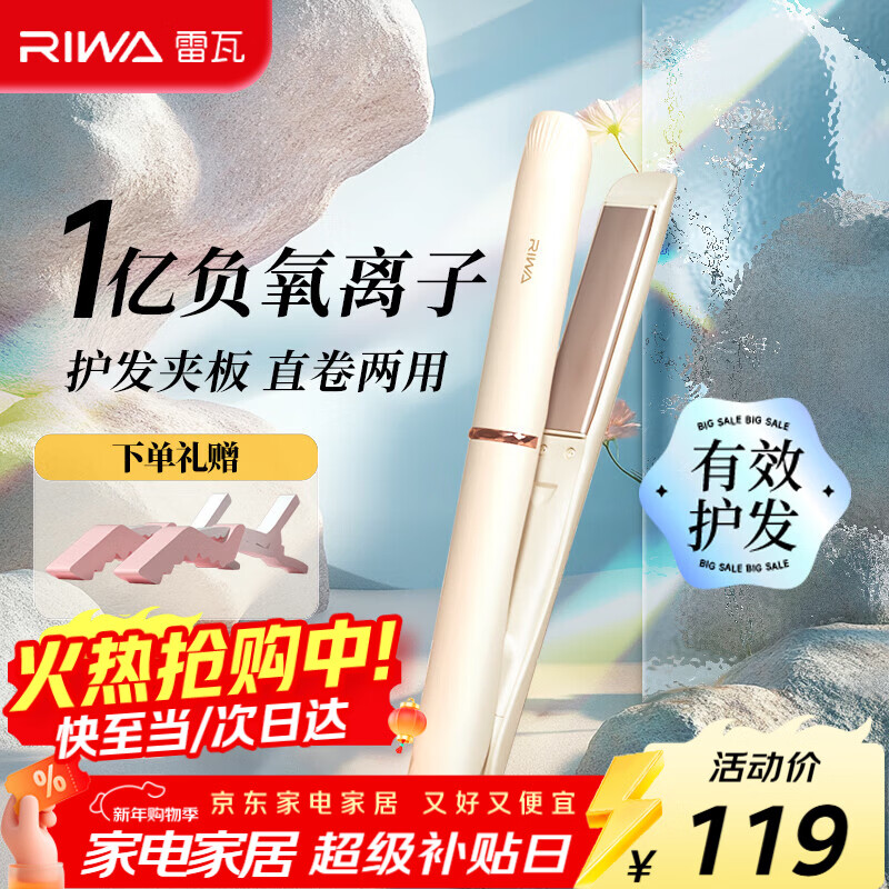雷瓦(RIWA)夹板宿舍直板夹【新年礼物】负离子 卷发棒直发两用拉直迷你宿舍小功率刘海电夹板生日礼物RB-8150