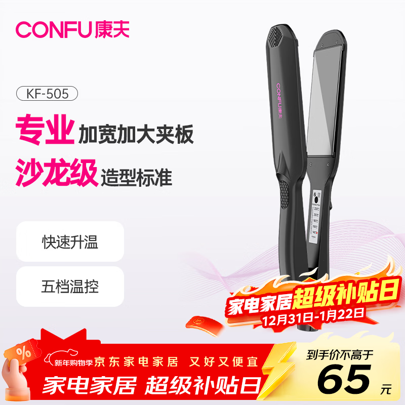 康夫(CONFU)卷发棒电夹板拉直加宽直卷两用专业男女夹板理发店发廊烫发直板夹美发熨板直发器 KF-505