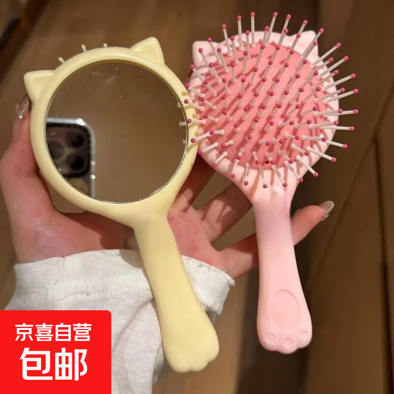 茉心夹板直发卷发棒直板夹两用定型拉直发夹板不伤发负离子小型拉直板夹女卷发神器直发梳卷发神器宿舍 迷你二合一【镜子+气垫梳】粉色