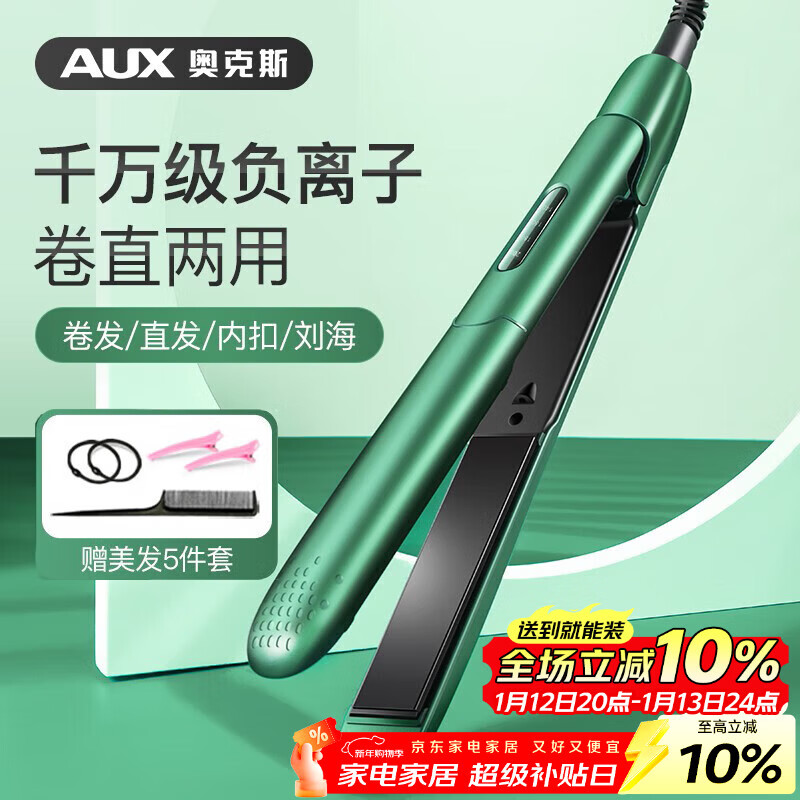 奥克斯(AUX)卷发棒夹板直发迷你直板夹两用拉直板直发器刘海夹电夹板头发蓬松神器负离子礼物HS-705