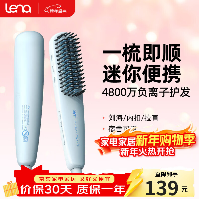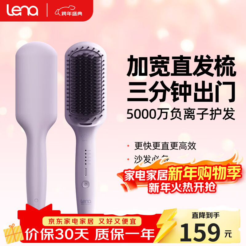 lena直发梳负离子不伤发 拉直内扣两用卷发棒夹板直板夹蓬松梳 短发神器电卷发梳 新年礼物 LN-914F