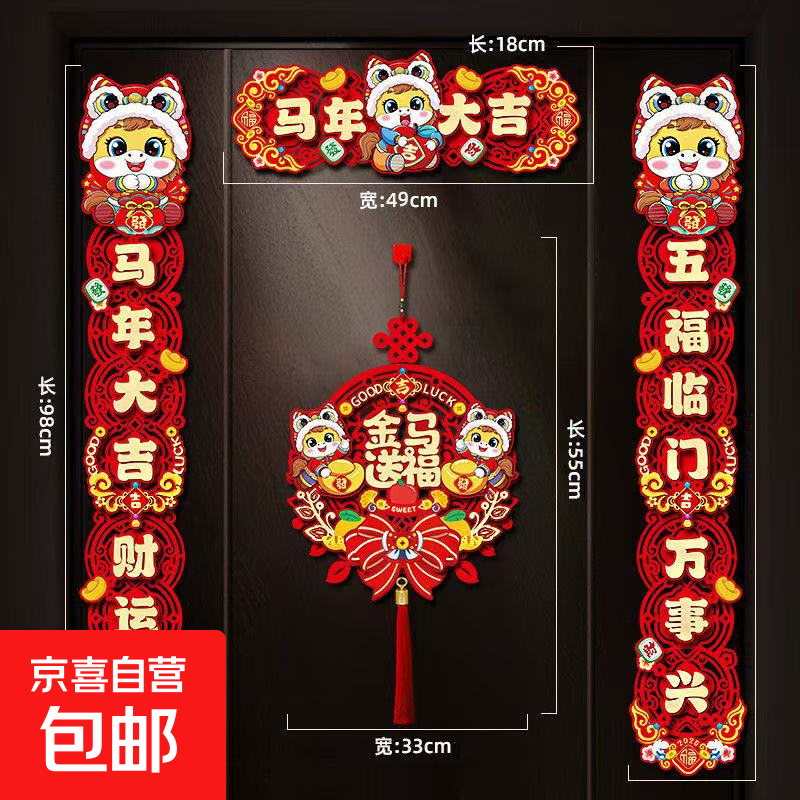 对联2026马年新年春联家用春节过年福字门贴元旦布置装饰用品 爆款套装-马年大吉+金马送福 成品发货【送磁吸+点胶+挂钩】大门通用