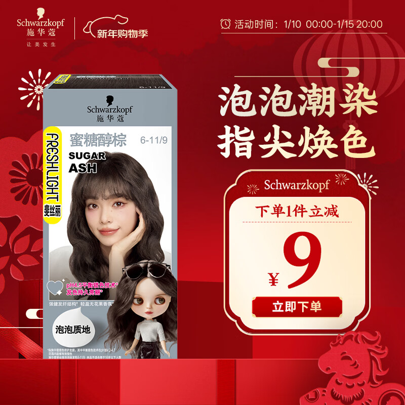 施华蔻(Schwarzkopf)斐丝丽泡泡染发乳6-11/9蜜糖醇棕 染发膏自己染染发泡泡潮流彩染
