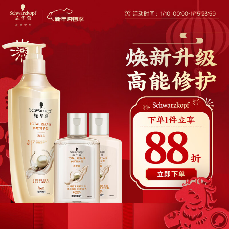 施华蔻(Schwarzkopf)多效修护型洗发露400ml+120ml旅行装 柔顺滋养洗发水 新老包装