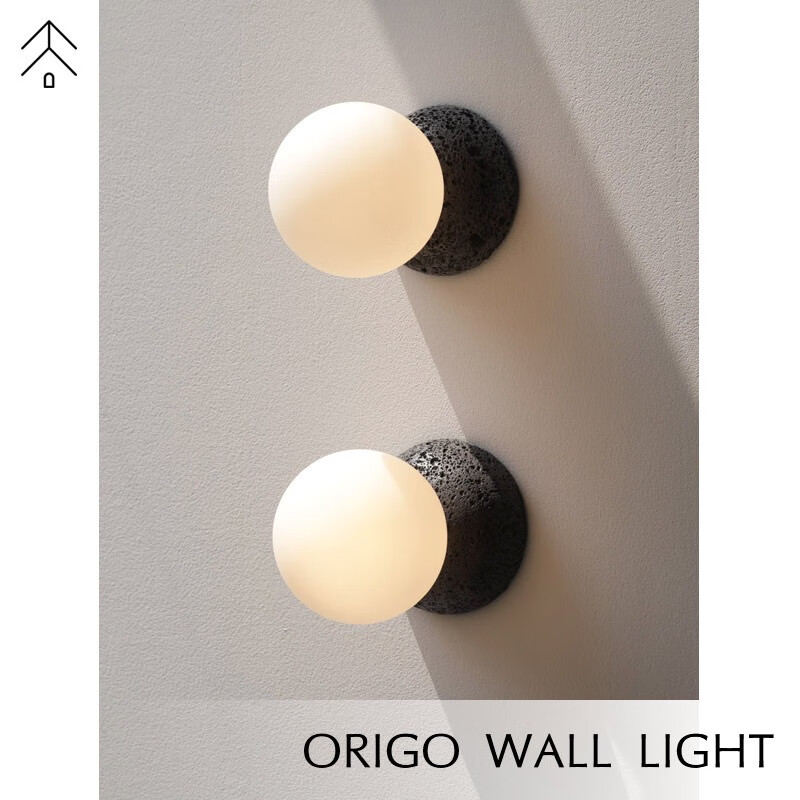 无瑕Origo极简水磨石诧寂风客厅背景墙过道玄关北欧圆球卧室床头壁灯 黑砂石暖光3000K
