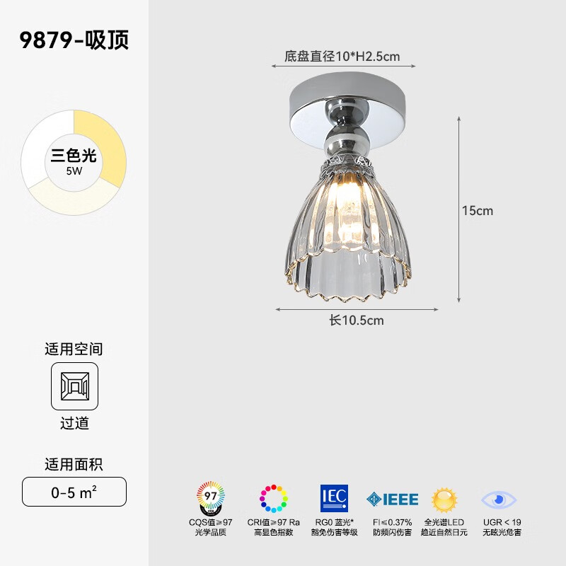 无瑕走廊过道玄关吸顶灯现代简约玻璃led灯创意全光谱厨卫入户阳台灯 烟灰色-全光谱A款11CM三色