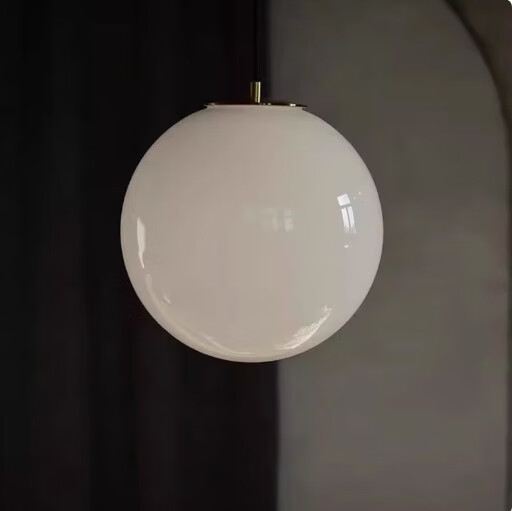 无瑕餐厅吊灯圆球玻璃灯卧室灯书房灯包豪斯创意吧台侘寂风中古风灯具 25cm玻璃球+黑色金属- 全光谱暖