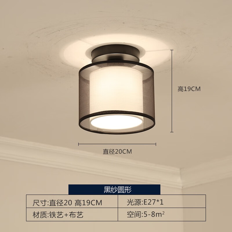 无瑕过道走廊玄关灯简约现代中国风阳台灯卧室小吸顶灯新中式灯具 黑纱圆形+赠送LED光源