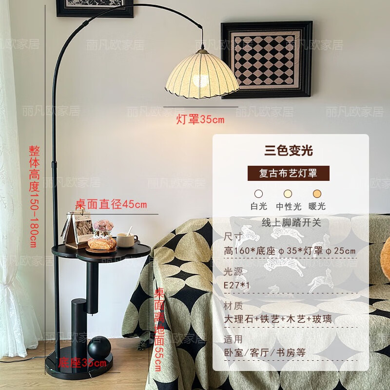 无瑕瑕瑕美式简约落地灯客厅茶几轻奢i风布罩立式钓鱼灯卧室床头柜黑 650mm