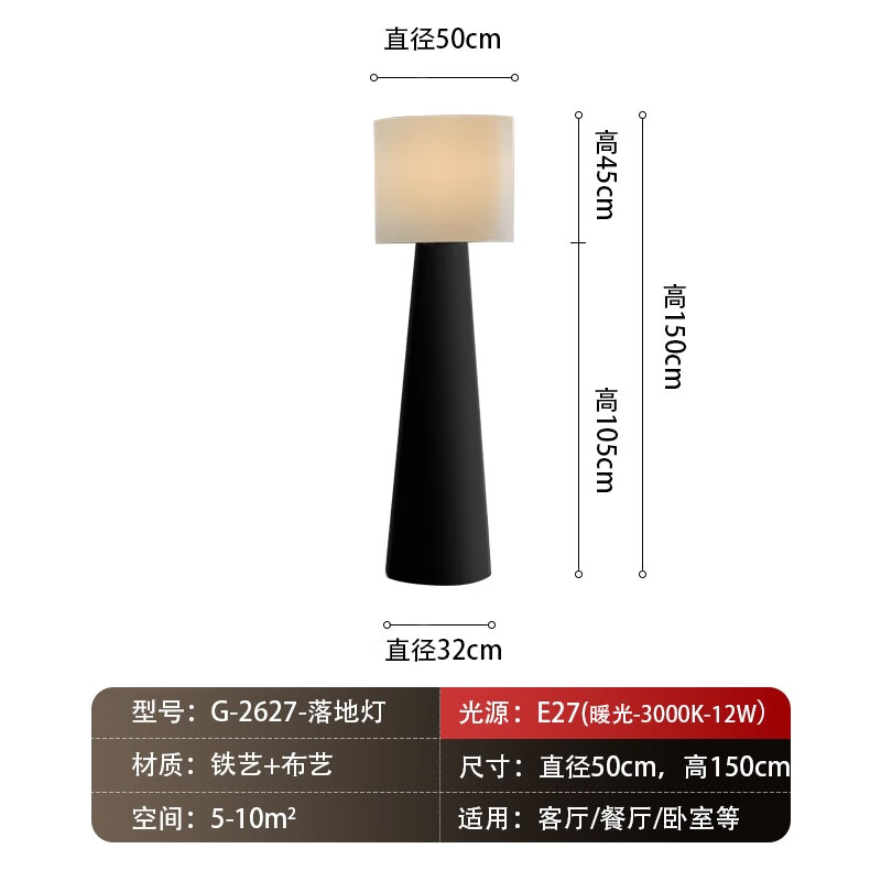 无瑕日式侘寂风落地灯客厅沙发边卧室复古中古风样板间现代简约布艺灯 小号落地灯灯罩直径50*高150CM