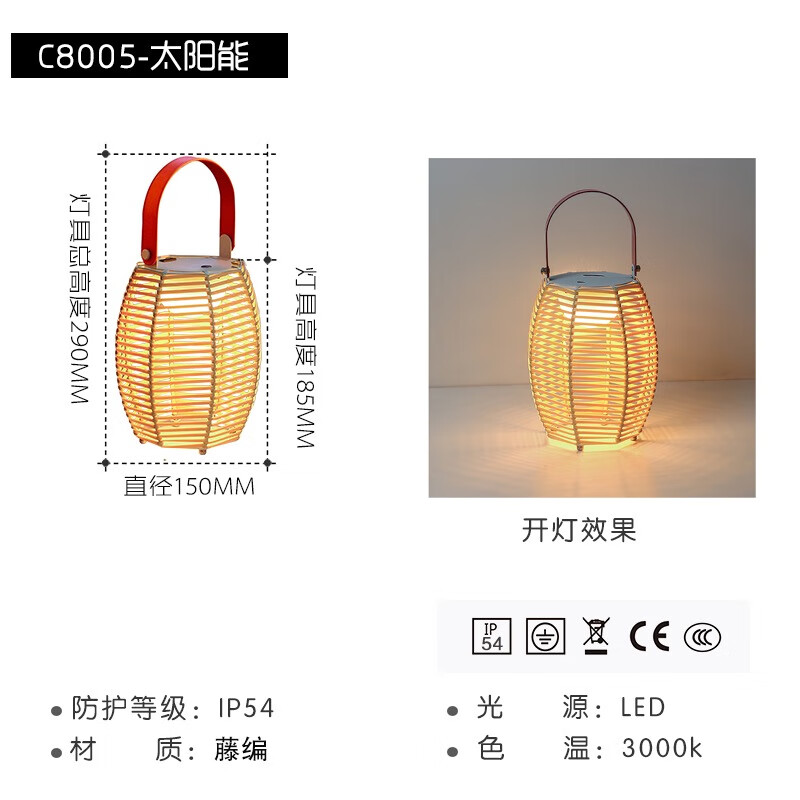 无瑕太阳能户外草坪灯别墅庭院餐桌灯防水手提灯露营充电灯民宿编织灯 太阳能款小号/直径15高29CM