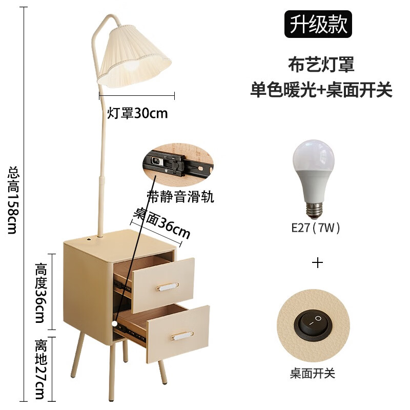 无瑕奶油风落地灯卧室氛围感花朵装饰置物摆件客厅沙发床头柜台灯一体 松木升级款百褶灯罩+单色暖光
