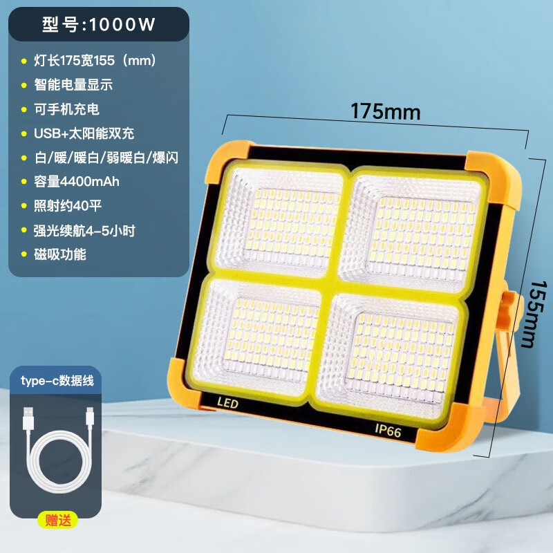无瑕摆摊夜市灯太阳能充电led超亮地摊灯户外长续航应急照明灯露营灯 1000W五档调节可手机充电