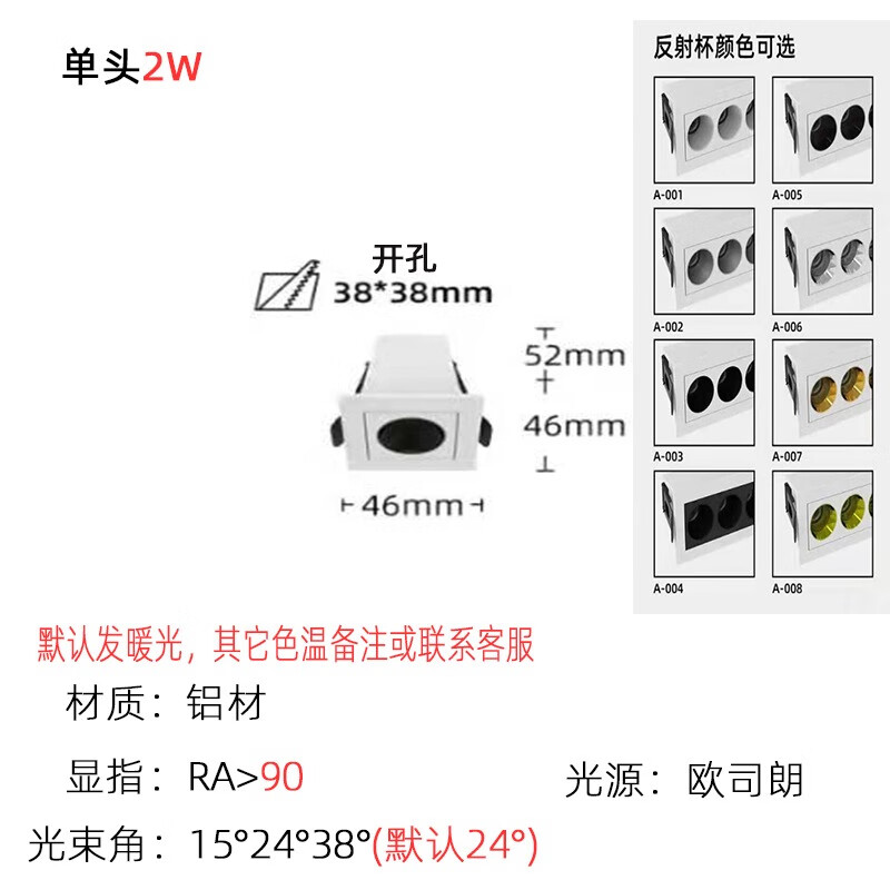 无瑕嵌入式led线条灯客厅高端无主灯家用设计格栅条形灯长条射灯中性 黑白-2W-3000k-开孔38*38mm