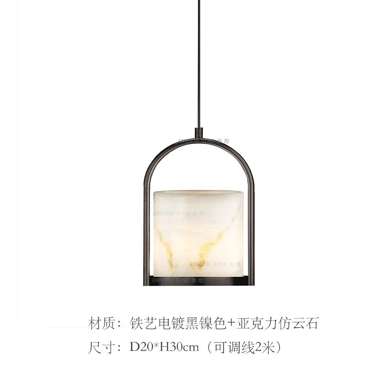 无瑕新中式云石小吊灯天然卧室床头吊灯单头长线极简黑餐厅禅意茶室铜 A款-仿云石200*300-深镍色 吊线