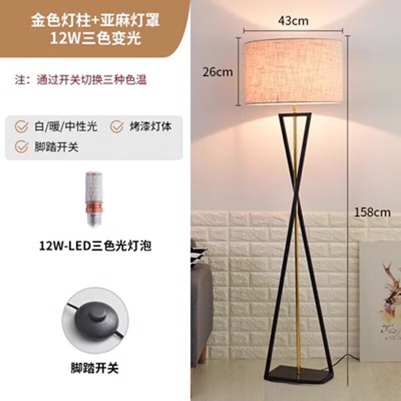 无瑕瑕瑕北欧客厅沙发旁落地灯卧室床头灯简约现代创意ins风立式灯 黑金杆+亚麻罩led单色暖光