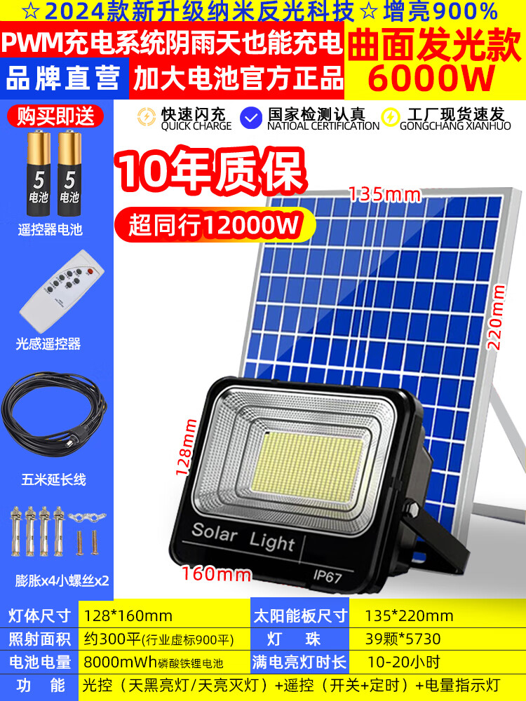 无瑕新款太阳能户外投光灯家用高级多功能定时庭院 [特价热卖]6000w家用[50平]