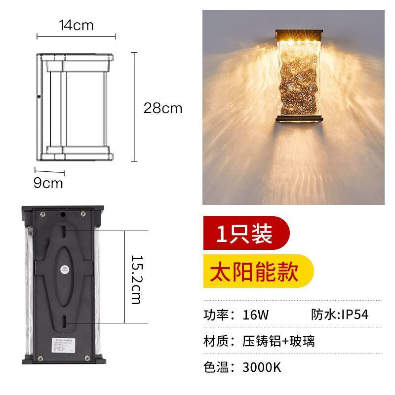 溥覃无瑕户外壁灯别墅阳台花园氛围装饰灯太阳能庭院灯室外防水超亮 太阳能款压铸铝水波纹大号玻璃