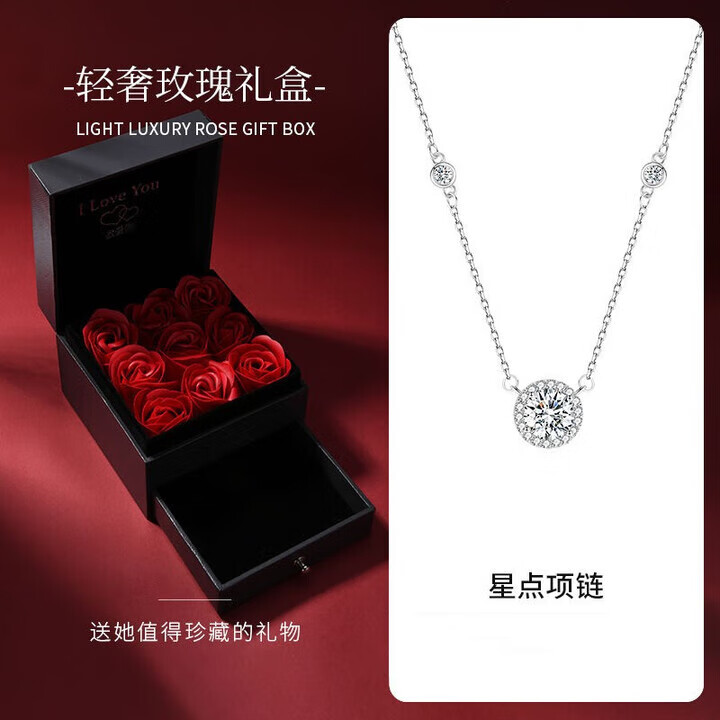 DTOTO项链纯银999足银吊坠繁星点点银项链女轻奢高级送女友礼物 星星项链+玫瑰礼盒