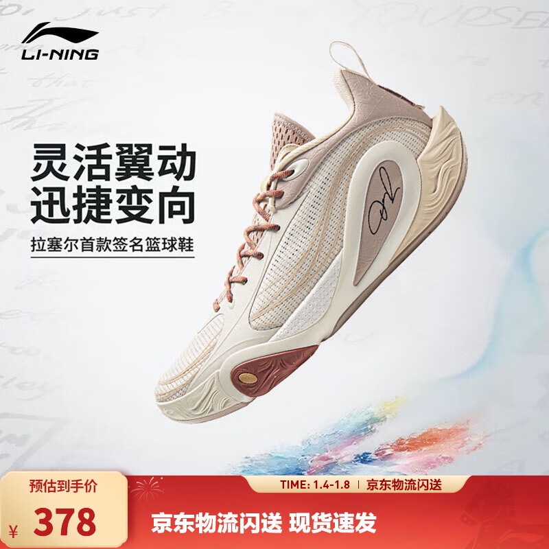 李宁拉塞尔1代DLO1 丨beng轻弹科技篮球鞋男鞋轻量高回弹篮球运动鞋 米白色/蘑菇褐-7 魁星点斗 41