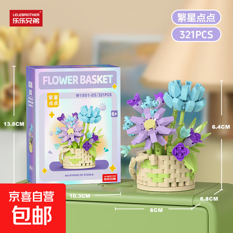 仿真花篮花系列diy国产积木小颗粒益智拼装女孩精致桌面摆设玩具 繁星点点