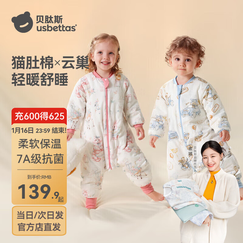 贝肽斯睡袋婴儿春秋季儿童宝宝3-6岁纯棉分腿式防踢被保暖防惊跳连体衣 熊游奇境【秋冬中厚 10-20°C】猫肚棉 M码 建议身高80-95cm建议1.5-2.5岁