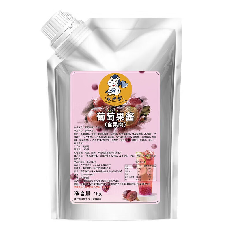 权焠帮葡萄果酱袋装奶茶店多肉果茸果肉果粒酱果汁饮料浓浆 权焠帮葡萄果酱1KG