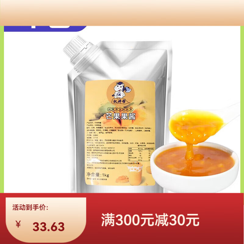 权焠帮杨枝甘露芒果果酱奶茶店专用果茸果泥浓浆印度商用酱 权焠帮芒果酱1kg