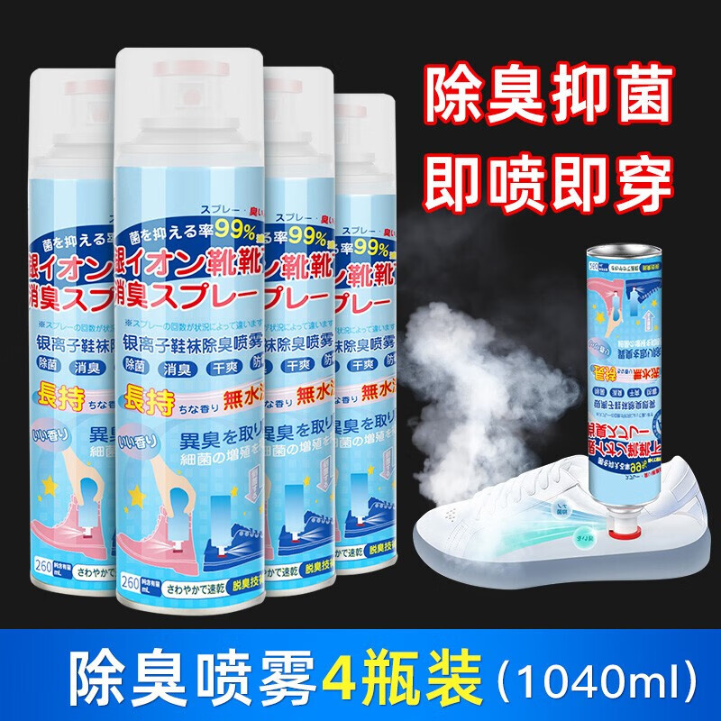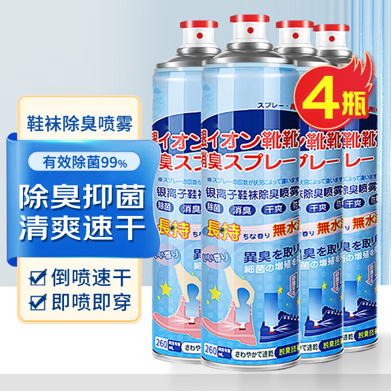 杜尔.德澳(DUER.DEAO)银离子鞋袜除臭喷雾球鞋鞋柜杀菌去异味除臭剂汗脚去脚臭消消乐 4瓶【银离子】鞋袜除臭喷雾