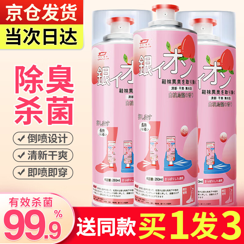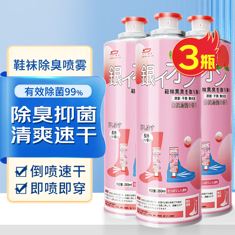 杜尔.德澳杜尔德澳鞋子除臭喷雾鞋袜除臭喷剂球鞋脚臭银离子运动篮球鞋汗脚 白桃味除臭喷雾3瓶装