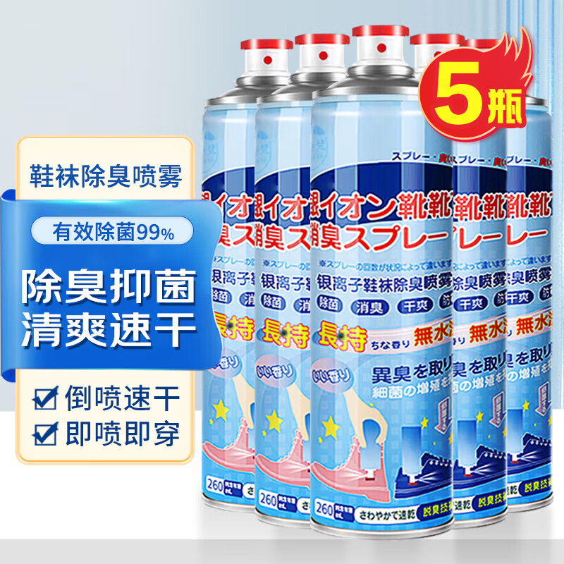 杜尔.德澳鞋子除臭喷雾鞋袜除臭喷剂球鞋脚臭银离子运动篮球鞋汗脚防臭去味 除臭喷雾5瓶装