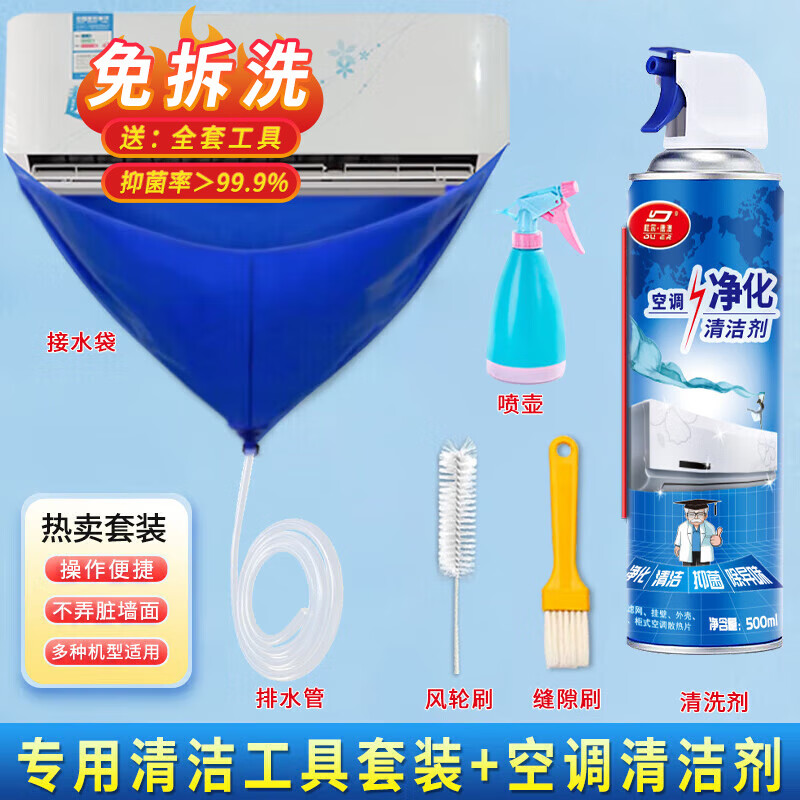 杜尔.德澳空调清洗剂免拆带清洗工具全套空调清洗接水袋除菌消毒空调清洁剂 清洗剂+接水袋+风轮刷 500ml 1瓶