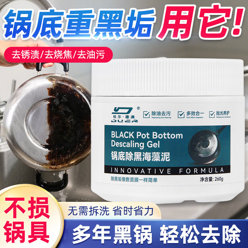 杜尔.德澳锅底除黑海藻泥膜不锈钢除黑剂厨房去重油污强力去除污垢清洁剂 1瓶【升级配方】锅底除黑海藻泥260g