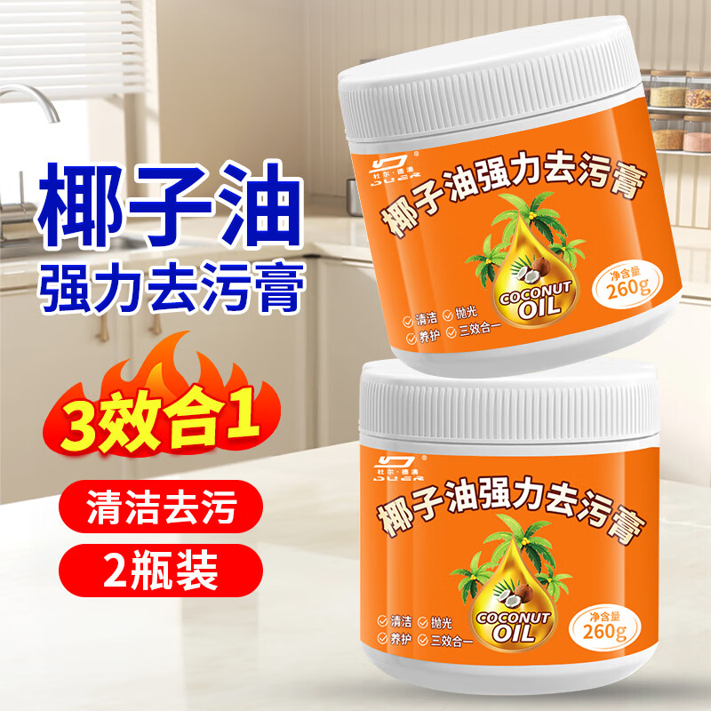 杜尔.德澳椰子油强力去污膏清洁膏除垢清香型家用油污清洗瓷砖 260g*2瓶