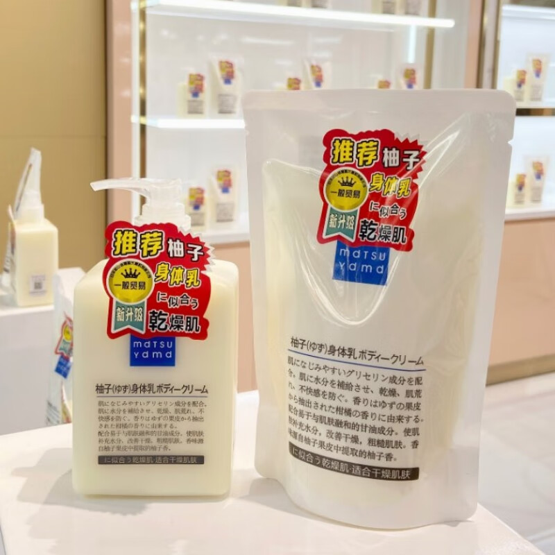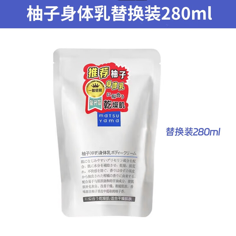 日本松山油脂柚子身体乳无添加清爽保湿乳液全身留香润肤乳300ml 替换装280ml