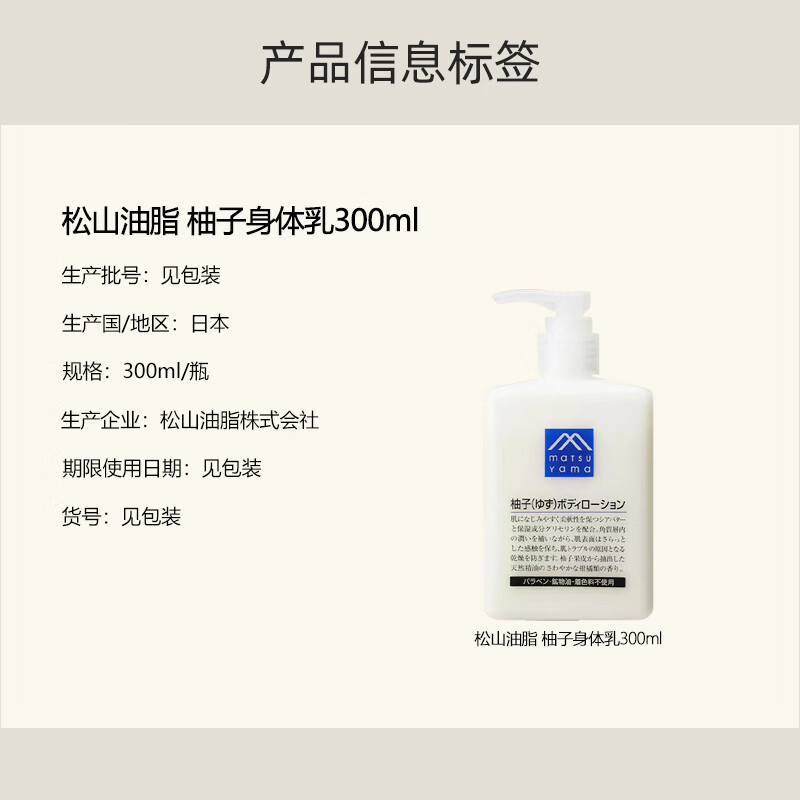 松山油脂M-mark系列 柚子身体乳精华润肤露 300ml 保湿滋润 日本 进口 松山柚子身体乳300ml*1