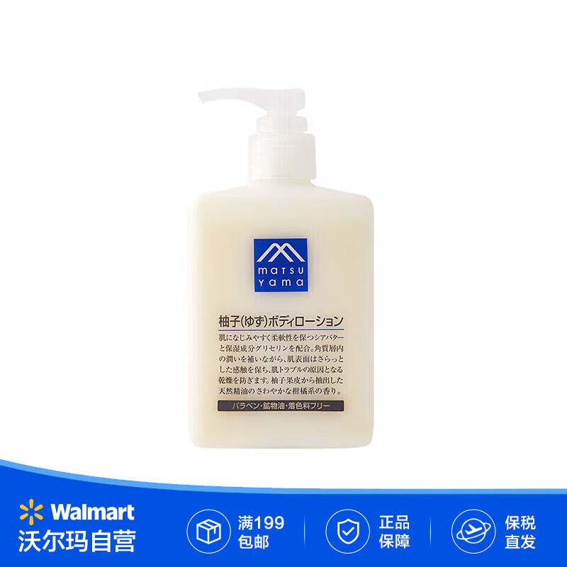 松山油脂M-mark 日本原装进口 无添加植物滋润保湿补水身体乳【沃尔玛】 柚子香型身体乳300ml