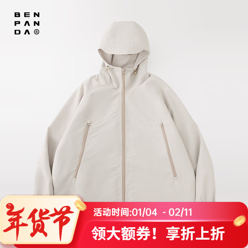 熊猫·本(ben.panda)春季冲锋夹克男宽松山系防泼水大口袋连帽男女同款情侣上衣外套 卡其色 M