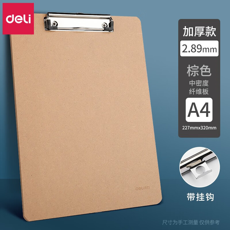 得力(deli) 书写板夹A4 板夹纸板 写字板夹垫板书写文件报告夹 【A4木质感-土棕】平头夹 挂孔 9226