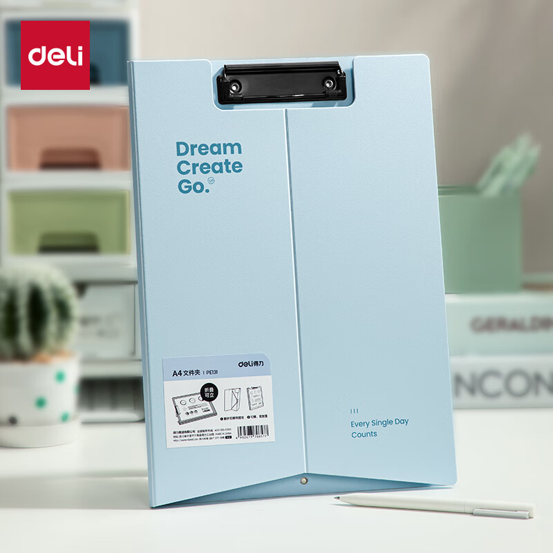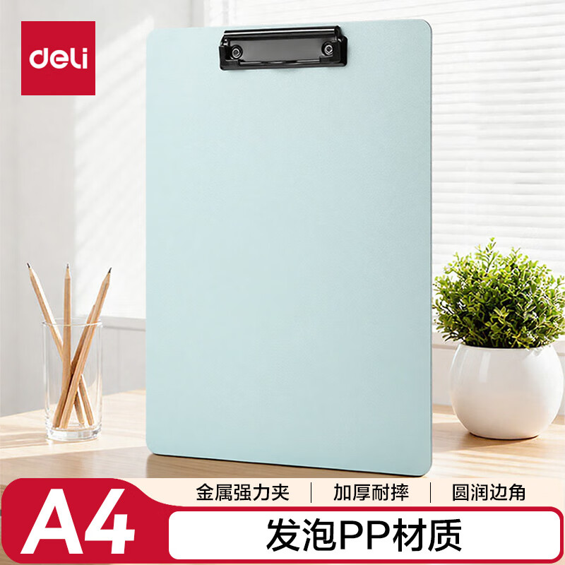 得力(deli)A4站立式文件夹 书写板夹垫板朗诵写字硬板夹 试卷资料收纳夹考试专用 学生办公用品PE131浅蓝色