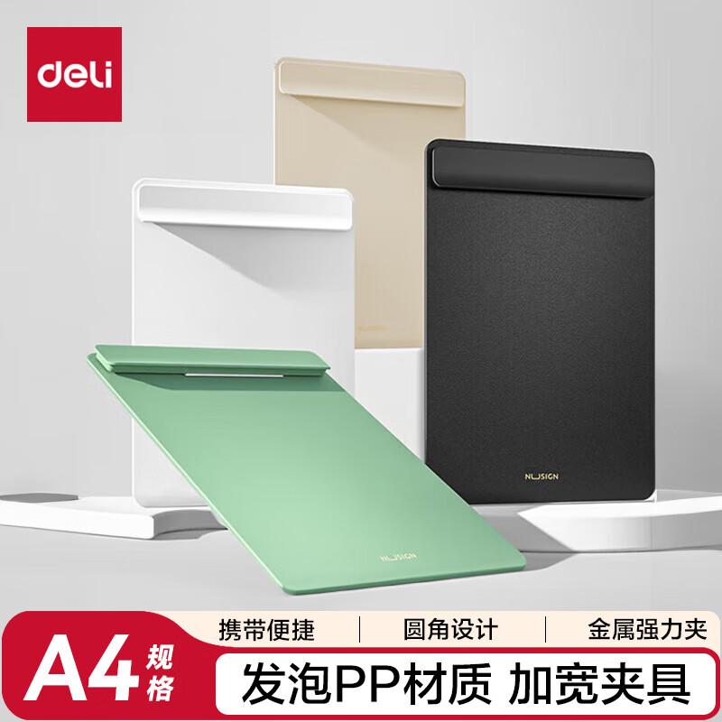 得力(deli)A4板夹文件夹 夹板写字板夹书写板夹学生试卷资料档案收纳夹书写垫板 报告夹办公学习岩井绿 NS501